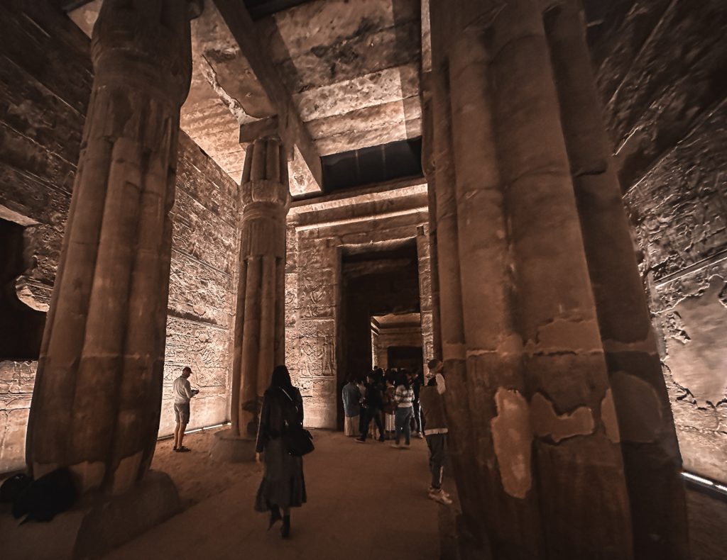 丹德拉神殿被譽為埃及最美的神殿,導致我們逛後來其他神殿,都有點無感。在丹德拉裡面探索非常過癮,有迴旋走廊、空中隔間、光影變化,你會拍到一堆漂亮照片,並且不用曬太陽。