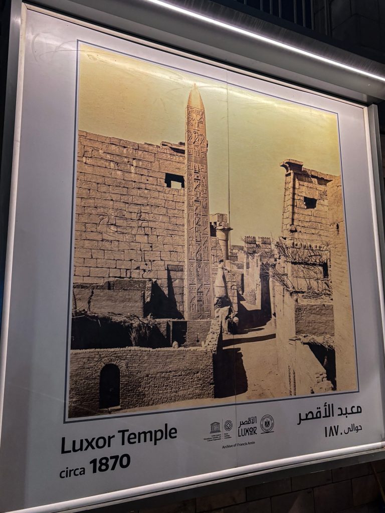 塔門高24公尺,寬65公尺,6個雕像都是「拉美西斯二世」,僅存的方尖碑也屬於他,而另一個跑去哪了呢?在法國巴黎的協和廣場。它被淹沒1000多年,上面早就建造了村落,然後才被發現巨大雕像的頭部;現場也有很多開挖遺跡時的照片,想像它一點一滴重見天日,確實是很令人興奮。