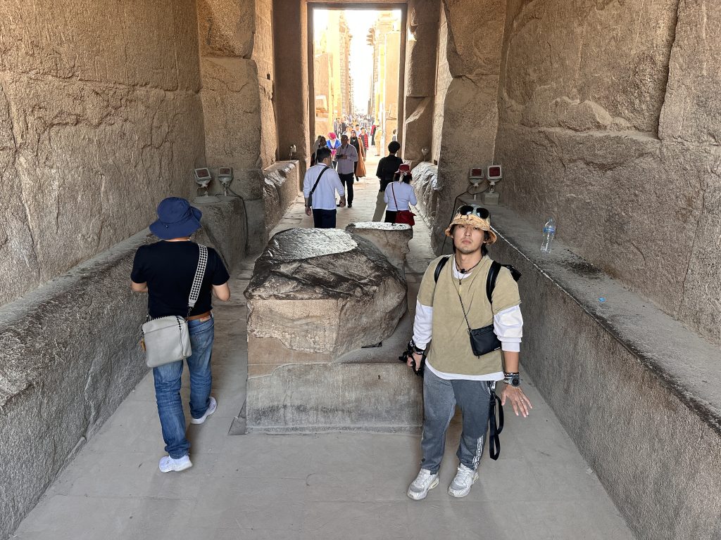 如果你看到一群人圍著它轉圈圈,你沒有瞎,這是在祈福,我覺得很好笑。聖甲蟲是太陽神的化身,也是「好運」的象徵,這只由紅色花崗岩製作的聖甲蟲,可是熱門景點,總之,想要獲得財富,請繞3圈;想要祈求愛情,請繞行5圈;想要祈求生子,請繞行7圈。重點來了,被我們當作靈能探測機的井先生,繞完之後立刻「感應到」,一股很熱的能量從腳底竄上來,導致有些暈眩。