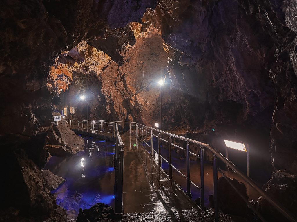 2.5億年,這是它的年紀,在日本約80個旅遊洞穴中,這裡是日本海拔最高的哦,海拔900公尺(台北101的海拔是500公尺),全長800公尺的蜿蜒之旅,一邊在狹窄的洞穴中探險攀爬、一邊欣賞打燈後的鐘乳石美景。不論戶外天氣如何,洞穴裡全年在攝氏12度左右(我穿羽絨外套謝謝),夏天可以避暑,冬天則是會形成特殊的「冰溪谷」美景。