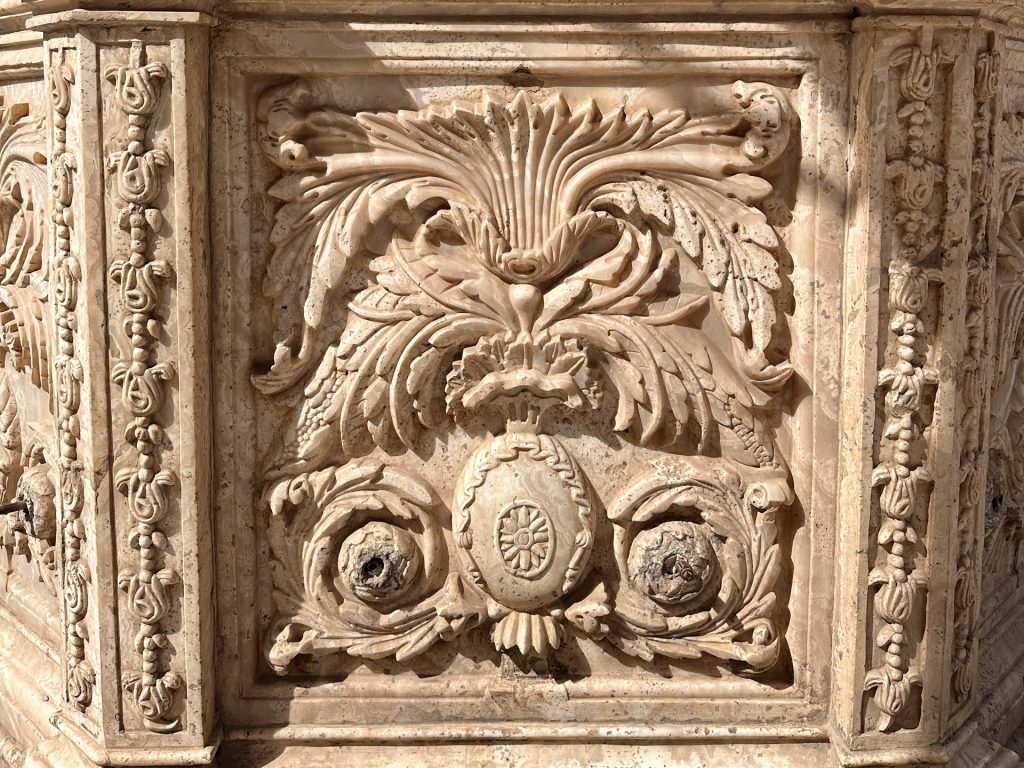 有很多細節,在各種不可能的地方,例如天花板、山壁上,都有精美雕刻或是壁畫。有一個聖母抱著聖子的雕刻,可以試著找找看哦!