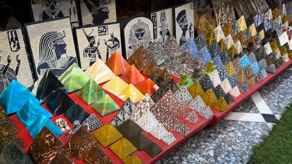 好多人都試圖搭訕你,跟你講話,連逛街都有壓力,一開始不太敢逛,但這是不對的示範!請進去逛!把價錢問一問!但不需要買,只是要建立一個對於什麼東西多少錢的標準,因為在埃及,通常商品都不會標價。我後來在盧克索,買了「一個350元」的金字塔裝飾品,最後一天,我在舊開羅的一間禮品店,買到「三個350元」的金字塔裝飾品,而且雕刻更精美!所以,貨比三家不會錯。